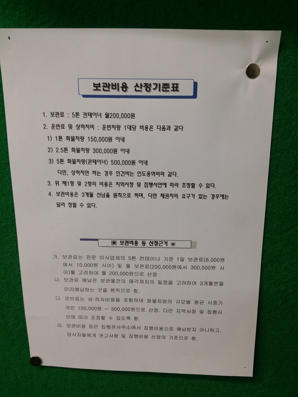 집행관 본집행시 물류 "보관비용 산정기준표" 페이지 정보 작성자 (220.♡.167.96) 작성일18-03-29 18:55 조회3,867회 댓글0건 관련링크 이전글 다음글 목록 본문 집행관은 인도집행을 하면서 집행목적물(건물) 이외의 동산(채무자 소유의 집기류)를 외부로 반출하여 물류업체에 보관을 하도록 하거나 집행채권자의 요청에 의하여 보관장소를 정하여 보관하도록 합니다.외부 물류업체에 보관시 집행관이 적용하는 "보관비용 산정기준표" 입니다. 댓글목록 등록된 댓글이 없습니다. 이전글 다음글 목록