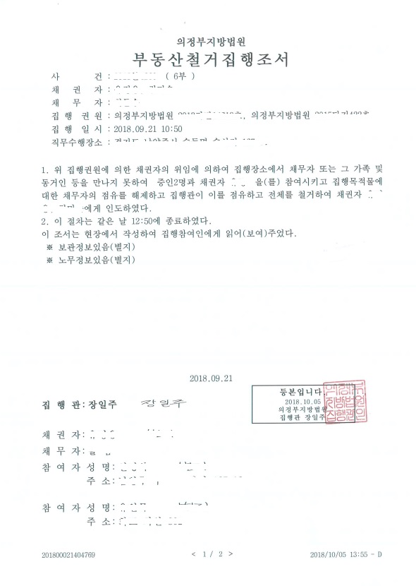 의정부변호사 건물철거 및 인도집행 조서(의정부집행관사무소) 페이지 정보 작성자 (14.♡.133.23) 작성일19-02-14 15:00 조회2,751회 댓글0건 관련링크 이전글 다음글 목록 본문 토지 위 지상 건물에 대한 건물철거 및 토지인도 사건의 집행권원 취득 후 의정부지방법원 집행관으로 하여금 철거집행 및 토지인도를 받은 사건의 인도집행조서 댓글목록 등록된 댓글이 없습니다. 이전글 다음글 목록